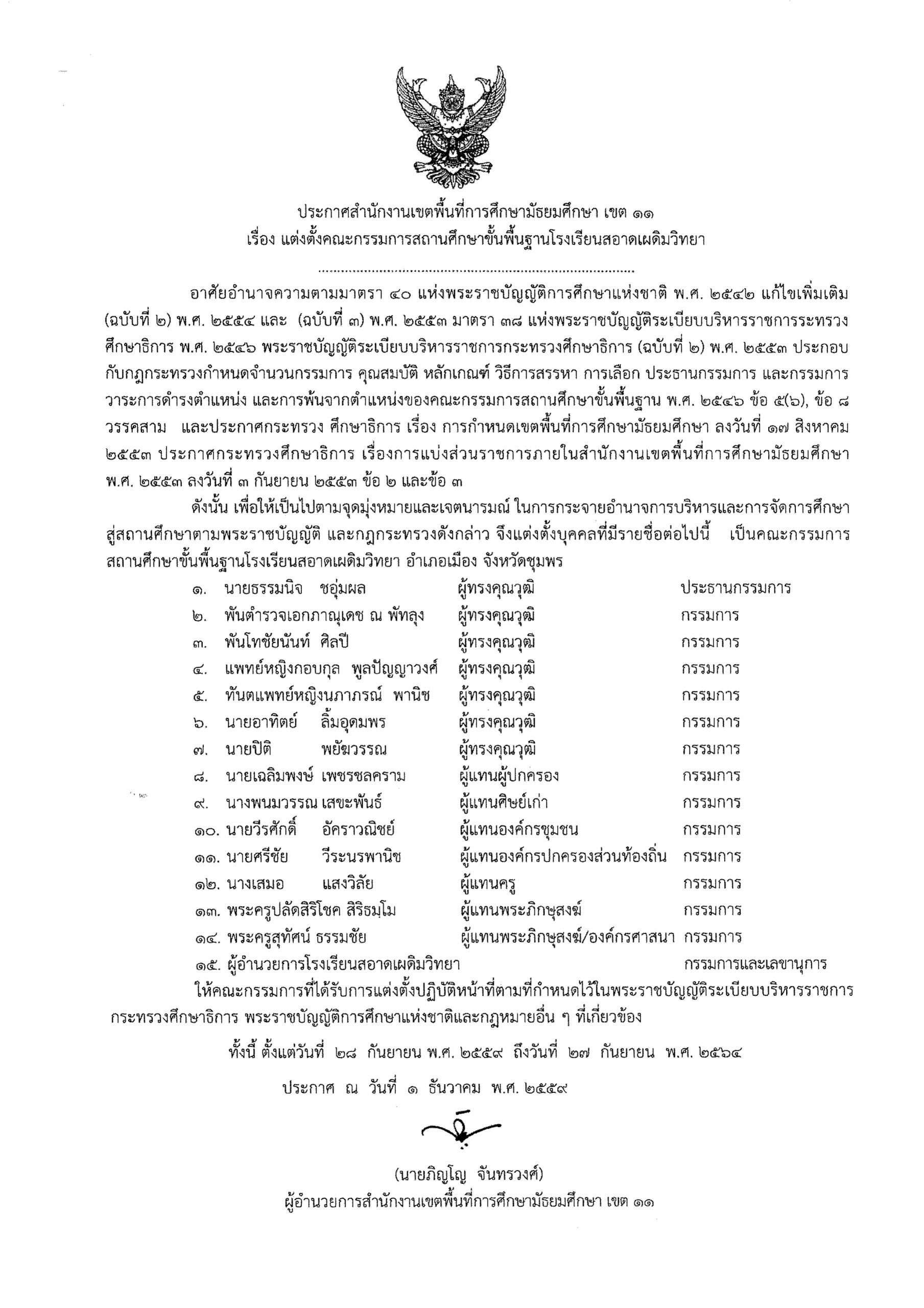 คณะกรรมการสถานศึกษาขั้นพื้นฐานโรงเรียนสอาดเผดิมวิทยา ปี 2559 – 2564 09/12/2016 9. คณะกรรมการสถานศึกษา 5,583 Views [Download] Share Facebook Twitter Google +